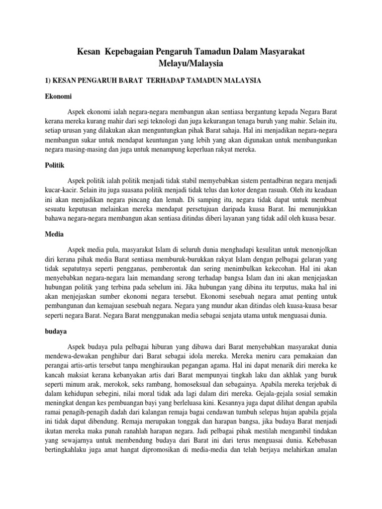 Kesan Pengaruh Barat Dan Melayu Terhadap Tamadun Malaysia Pdf